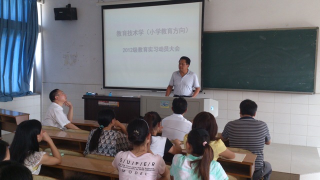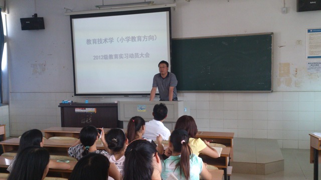 2014年9月28日,我院2012級(jí)教育技術(shù)學(xué)(小學(xué)教育方向)專業(yè)教育見(jiàn)習(xí)動(dòng)員大會(huì)在理科樓C棟503隆重舉行,院黨總支書(shū)記王杰文、副書(shū)記張如健,院長(zhǎng)助理田祖?zhèn)コ鱿瘯?huì)議。會(huì)議由教研室主任黃悅主持,教育實(shí)習(xí)帶隊(duì)老師周克江、姜華及全體2012級(jí)教育技術(shù)學(xué)(小學(xué)教育方向)學(xué)生參加了此次會(huì)議。 院黨委書(shū)記王杰文對(duì)教育實(shí)習(xí)工作進(jìn)行了全面部署。他介紹此次教育實(shí)習(xí)安排的總體情況,從實(shí)習(xí)的各環(huán)節(jié)提出了具體要求,強(qiáng)調(diào)了實(shí)習(xí)作為鏈接理論和實(shí)踐的紐帶、作為教師教育課程的重要組成部分,對(duì)于師范生具有的重大意義,并重點(diǎn)闡述了實(shí)習(xí)的基本任務(wù)。 院黨委副書(shū)記張如健、院長(zhǎng)助理田祖?zhèn)ハ嗬^發(fā)言,要求大家要增強(qiáng)安全意識(shí),確保人身和財(cái)產(chǎn)安全,同時(shí)要求指導(dǎo)教師做好組織安排、協(xié)調(diào)溝通、督查管理、后勤保障和指導(dǎo)評(píng)價(jià)工作。 最后,教研室主任黃悅對(duì)此次教育實(shí)習(xí)工作進(jìn)行了詳細(xì)部署,布置了實(shí)習(xí)任務(wù),從實(shí)習(xí)各環(huán)節(jié)對(duì)大家提出了具體要求。 教育實(shí)習(xí)是師范生由“學(xué)生”轉(zhuǎn)變?yōu)椤敖處煛钡倪^(guò)渡環(huán)節(jié),對(duì)培養(yǎng)師范生的教學(xué)能力、形成個(gè)性品質(zhì)、鞏固從事基礎(chǔ)教育教學(xué)工作的專業(yè)思想,起著不可忽視的巨大作用。2012級(jí)教育技術(shù)學(xué)(小學(xué)教育方向)的教育實(shí)習(xí)工作已經(jīng)拉開(kāi)帷幕,相信同學(xué)們必能懷抱教育家的理想而躬身踐行,仰望星空的同時(shí)腳踏實(shí)地,且學(xué)且悟,且行且思,樂(lè)知篤行,知行并進(jìn)!