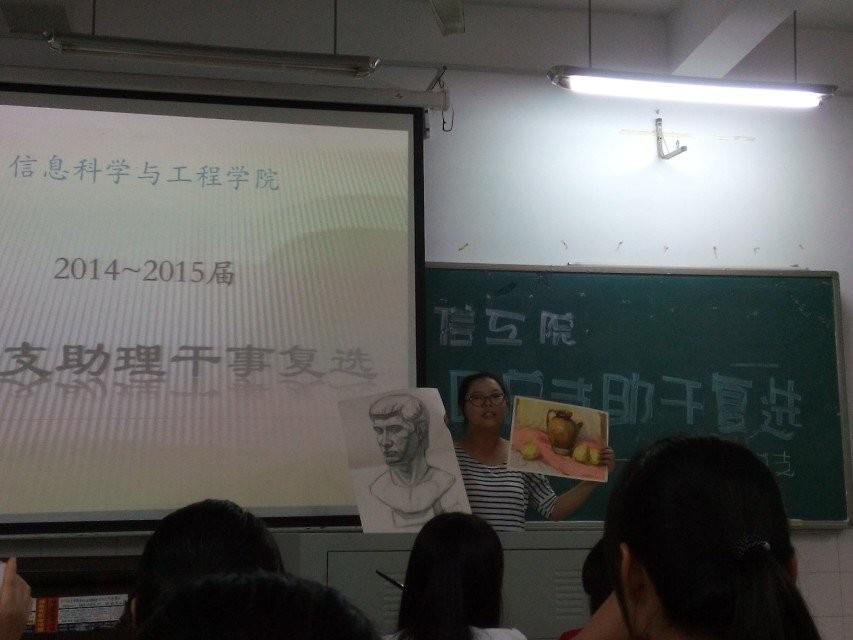 (通訊員 吳玲峰 易利) 為了吸收更多有才能的新成員,為信工院團總支注入新的活力,2014年10月10日晚6點于理科樓C棟301、302教室如期舉行助干招新復(fù)選活動。信工院黨總支書記王杰文、團總支書記易利、2014屆新生輔導(dǎo)員李豪杰應(yīng)邀出席了本次招新活動。