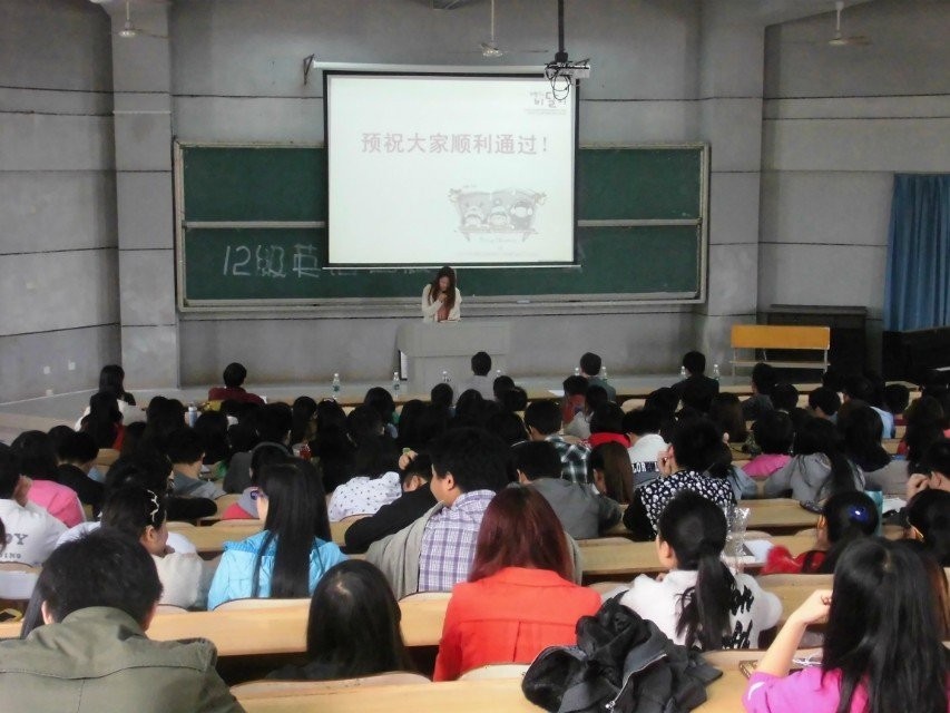 緊接著優(yōu)秀學(xué)生代表11電子科學(xué)與技術(shù)1班王婷向大家展示了10級(jí)、11級(jí)較高的四級(jí)通過(guò)率,并分享了四級(jí)考試的寶貴經(jīng)驗(yàn)。12教育技術(shù)學(xué)1班宋麗代表全體2012級(jí)學(xué)生表達(dá)了努力備考四級(jí)考試的決心。