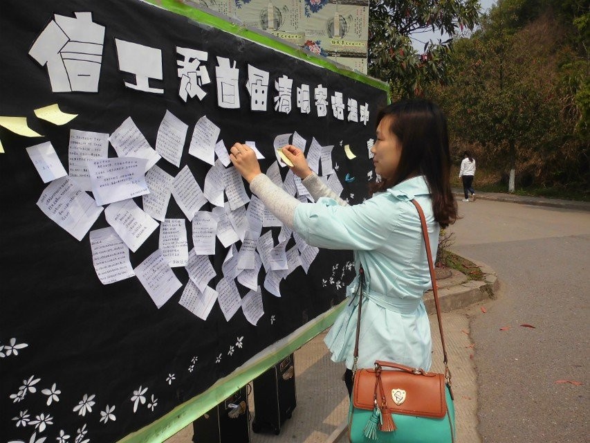 本次活動主題是“清明——寄語天堂的你”。伴隨著輕柔的音樂,走過三叉路口的同學(xué)紛紛停下腳步,手寫思念,寄語天堂的親人。一張張小小的便利貼,承載著大家對逝者的緬懷;一行行樸素的文字,表達(dá)出大家對逝者的思念。此外,我系學(xué)工辦主任易利親臨活動現(xiàn)場并積極參與了本次活動。懷念故者,珍惜存者,讓我們且行且珍惜。