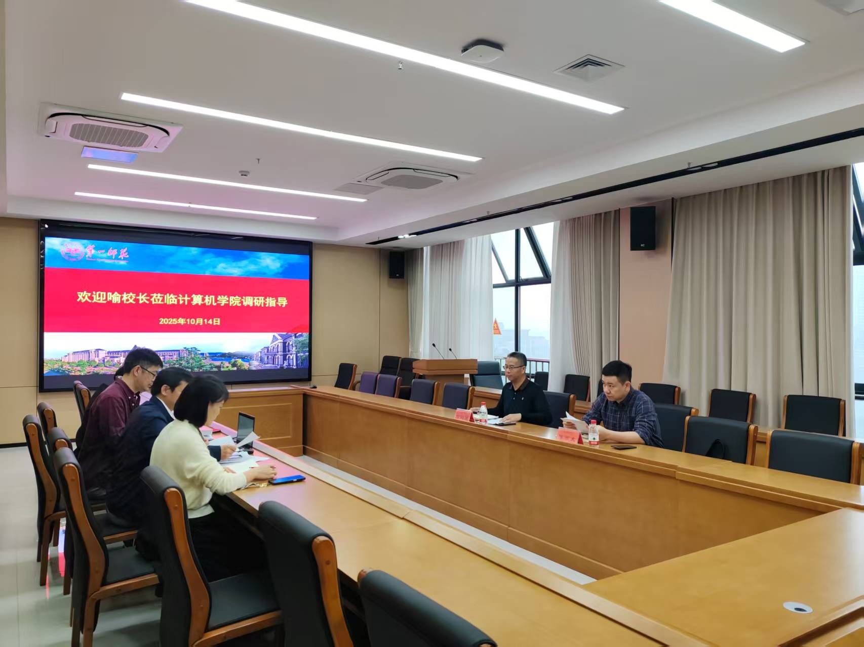 10月14日,校黨委副書記、校長喻祖國一行蒞臨計算機學(xué)院開展實地調(diào)研,深入了解學(xué)院發(fā)展現(xiàn)狀與未來規(guī)劃。學(xué)院黨政領(lǐng)導(dǎo)班子全體成員參加了調(diào)研座談會,會議由院長楊恒伏主持。