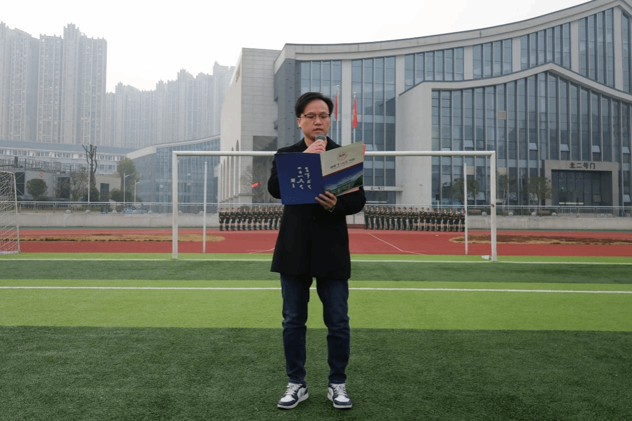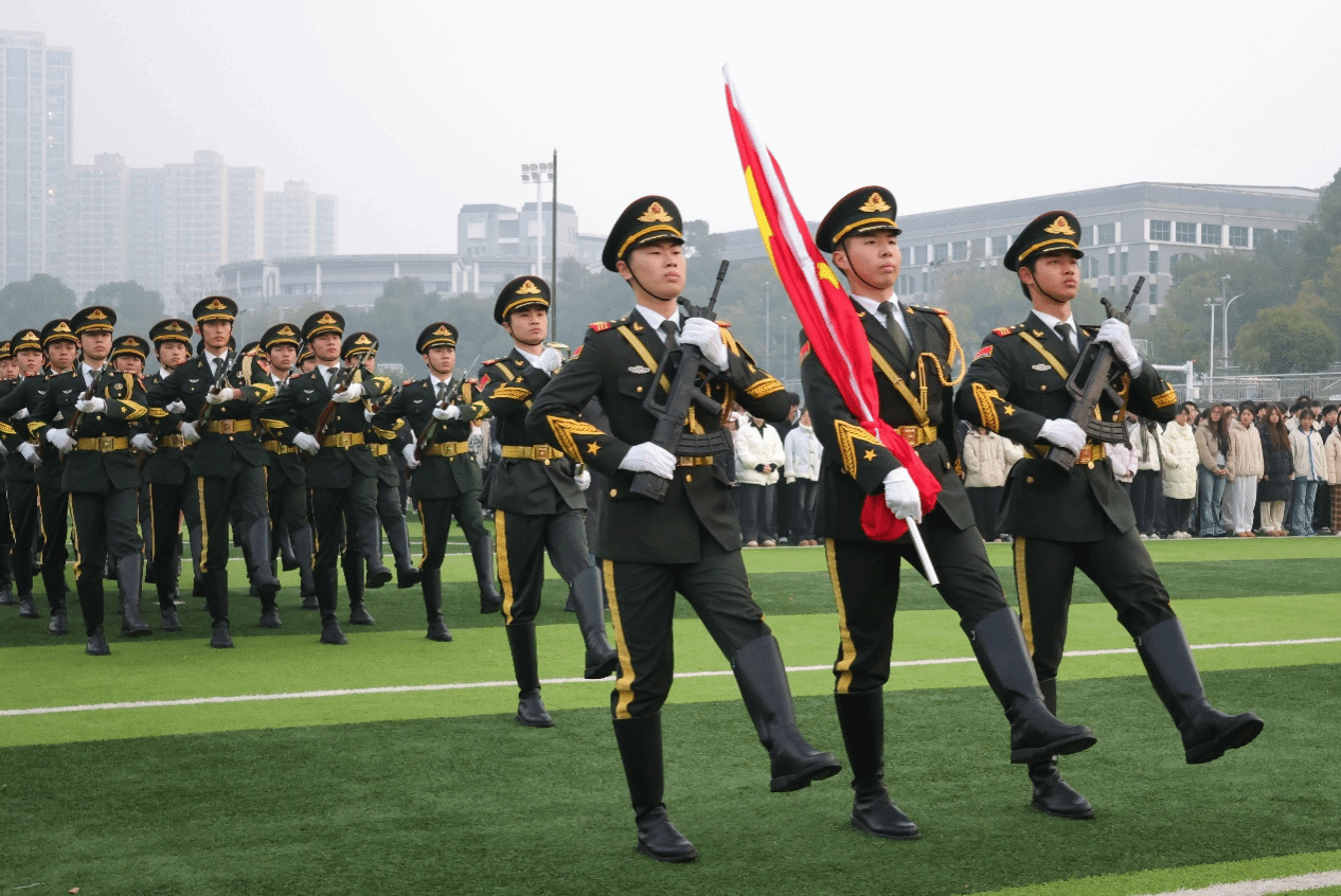晨光初現(xiàn),田徑場上一片肅穆。國旗護衛(wèi)隊身著統(tǒng)一制服,邁著鏗鏘有力的步伐,昂首挺胸護衛(wèi)國旗入場。伴隨著雄壯的《義勇軍進行曲》,鮮艷的五星紅旗冉冉升起,全體師生肅立注目,齊聲高唱國歌,表達對祖國的無限熱愛與崇高敬意,現(xiàn)場氣氛莊重而熱烈。