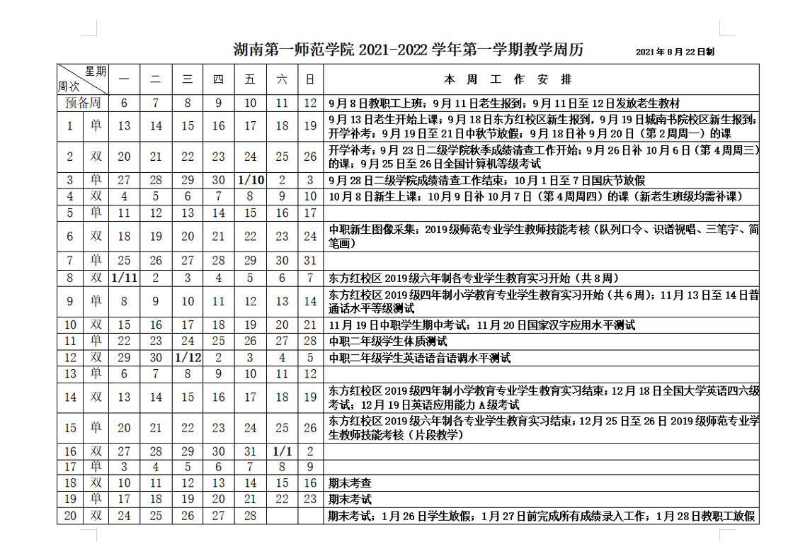 附件 湖南第一師范學(xué)院2021-2022學(xué)年第一學(xué)期教學(xué)周歷.pdf