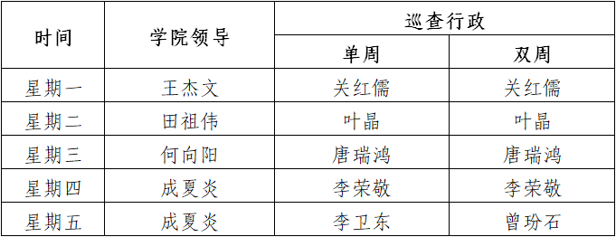 學(xué)院領(lǐng)導(dǎo)課堂巡查安排表