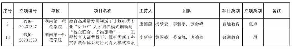 經(jīng)個(gè)人申報(bào)、專家評(píng)審、學(xué)校推薦申報(bào)、湖南省教育廳審核,我院獲湖南省普通高等學(xué)校教學(xué)改革研究項(xiàng)目2項(xiàng),其中重點(diǎn)項(xiàng)目和一般項(xiàng)目各1項(xiàng)。