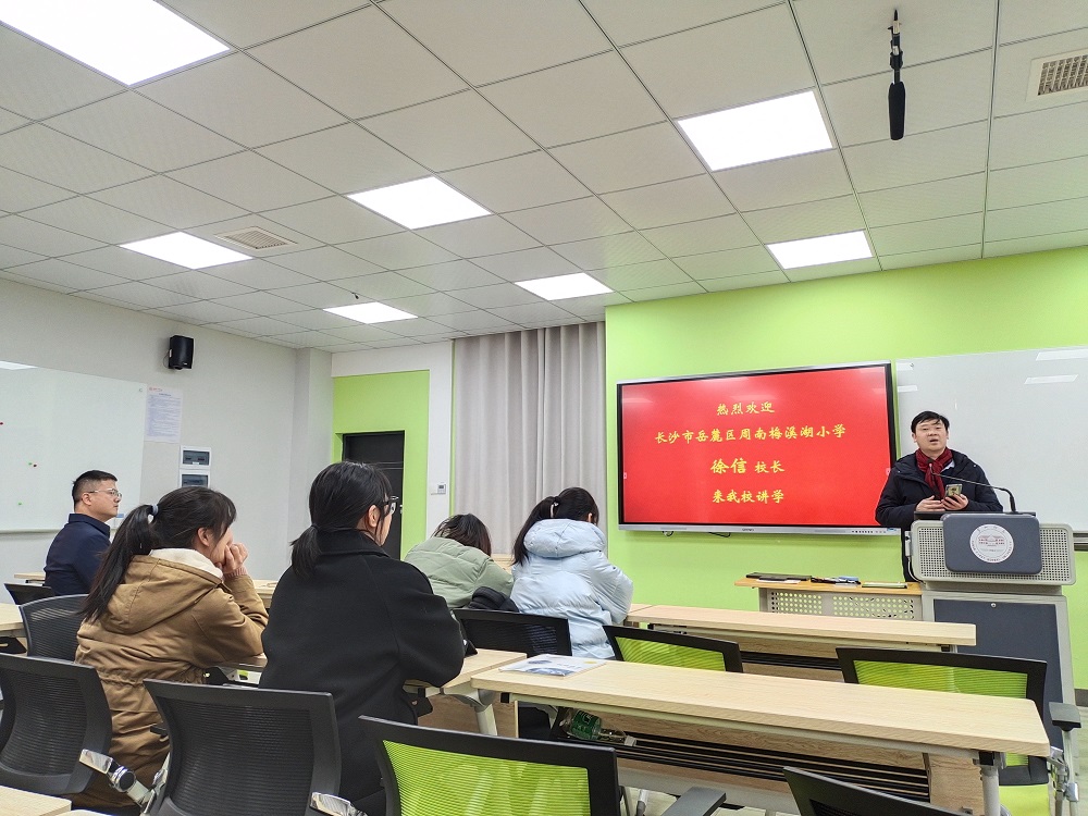 為促進我院師范生專業(yè)能力發(fā)展,拓寬學生視野,幫助學生做好專業(yè)發(fā)展規(guī)劃,增強學生職業(yè)歸屬感和社會責任感,2021年12月30日下午,岳麓區(qū)周南梅溪湖小學校長徐信在特立北105為我院師生開展了題為“學生發(fā)展力——一個校長基于愛的教育理念思考和德育實踐探索”的專題講座。講座由學院黨委書記劉立勇教授主持,何向陽副院長、學工辦主任關(guān)紅儒及教育技術(shù)學專業(yè)三年級學生參與了本次講座。