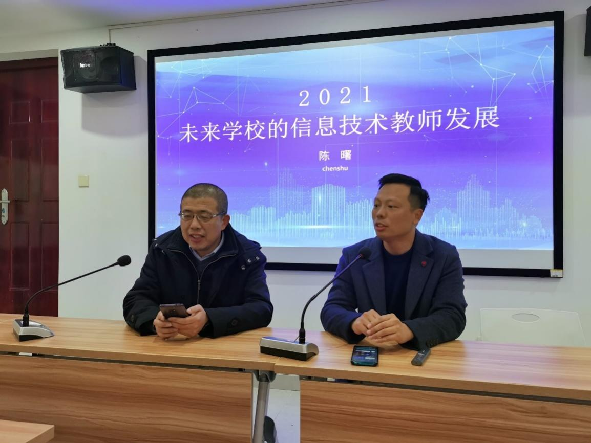 為了讓六年制教育技術(shù)學(xué)專業(yè)師范生對未來學(xué)校和信息技術(shù)教師的專業(yè)發(fā)展有更明確的認(rèn)識,全面了解中國現(xiàn)代化教育的規(guī)劃,激勵學(xué)生充分利用在校時間努力提升相關(guān)專業(yè)素養(yǎng)。2021年12月8日下午,岳麓區(qū)實驗小學(xué)陳曙校長在雙創(chuàng)樓414為我院師生開展了“未來學(xué)校的信息技術(shù)教師專業(yè)發(fā)展”的專題講座。講座由何向陽副院長主持,院黨委書記劉立勇,院長滿君豐,學(xué)院教師黃悅、劉琳、張卓林及19級817、818教技班學(xué)生參加了本次活動。