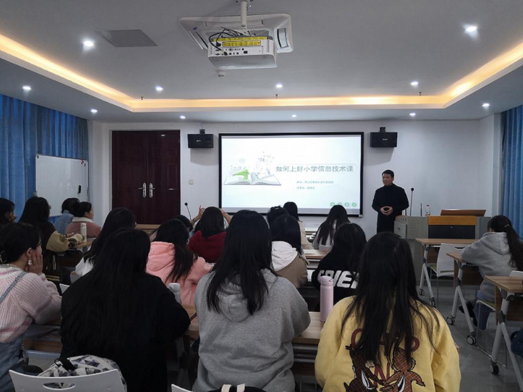 為豐富2019級六年制教育技術(shù)學專業(yè)師范生教育實習的內(nèi)容和形式,幫助學生提升教師專業(yè)素養(yǎng),加強對“好的信息技術(shù)課”的理解和把握,11月25日下午,天心區(qū)青園小學龔宣運老師圍繞“如何上好一門信息技術(shù)課”這一主題在雙創(chuàng)樓414展開專題講座。