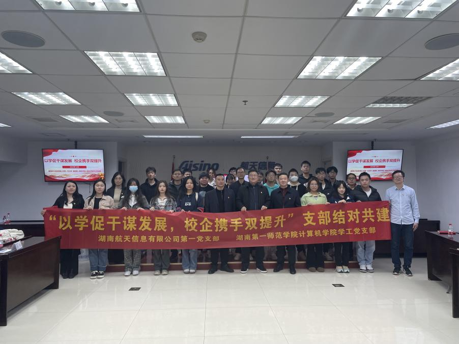 為進(jìn)一步推進(jìn)校企交流合作,12月6日下午,計(jì)算機(jī)學(xué)院學(xué)工黨支部與湖南航天信息有限公司第一黨支部聯(lián)合開展“以學(xué)促干謀發(fā)展”“一課一片一實(shí)踐”支部共建活動(dòng)。計(jì)算機(jī)學(xué)院黨委書記劉立勇、湖南航天信息有限公司黨總支書記、總經(jīng)理覃巍,湖南航天信息有限公司副總經(jīng)理李江華,湖南航天信息有限公司黨員代表,計(jì)算機(jī)學(xué)院教師黨員代表、入黨積極分子代表和學(xué)生干部代表參加了此次活動(dòng)。