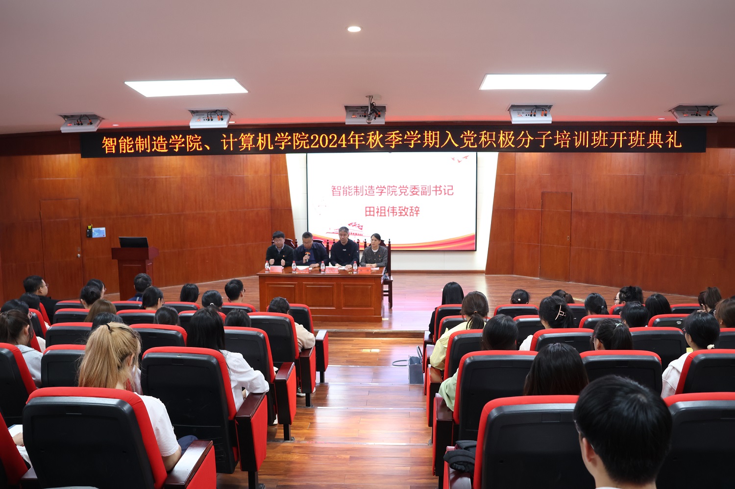 10月30日,計算機學院、智能制造學院2024年秋季學期入黨積極分子黨校培訓開班典禮在特立南112舉行。智能制造學黨委副書記(主持工作)田祖?zhèn)ァ⒂嬎銠C學院黨委副書記(主持工作)劉大維、智能制造學院黨委副書記陳陽、計算機學院黨委副書記陳奕、兩個學院學工辦輔導員、入黨積極分子參加了本次典禮,典禮由陳陽主持。