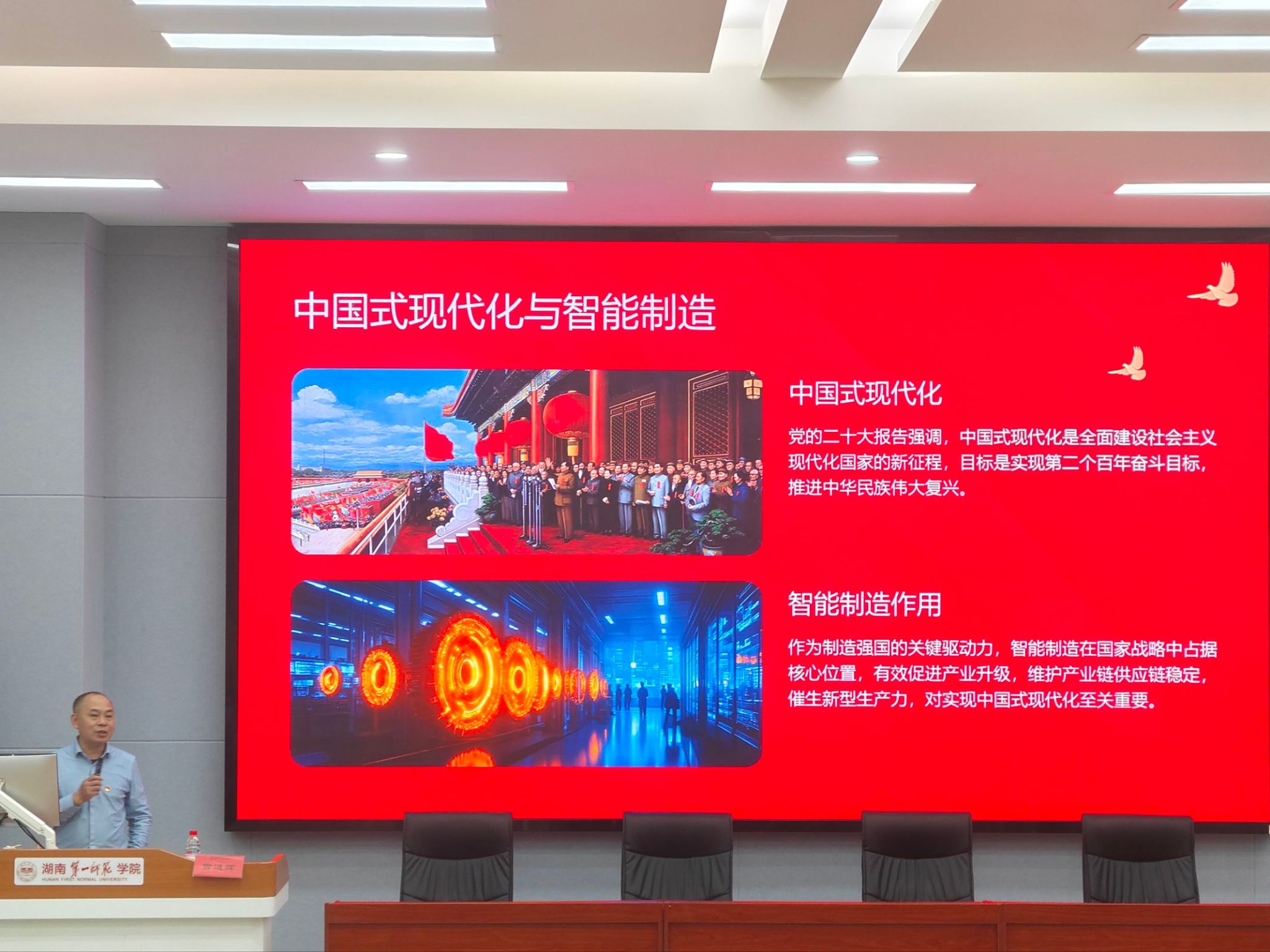 11月13日晚,智能制造學(xué)院院長曾進(jìn)輝在潤寰樓南105教室,為計(jì)算機(jī)學(xué)院與智能制造學(xué)院入黨積極分子講授題為“以奮發(fā)有為的時(shí)代擔(dān)當(dāng) 助力實(shí)現(xiàn)中國式現(xiàn)代化”的專題黨課。