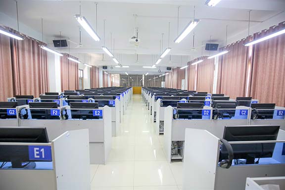 計(jì)算機(jī)基礎(chǔ)實(shí)驗(yàn)教學(xué)中心屬于省級(jí)實(shí)驗(yàn)教學(xué)示范中心,建于2006年3月,共有9間實(shí)驗(yàn)室,位于特立樓2-3樓,總面積1178.8平方米,資產(chǎn)總值達(dá)336.7萬(wàn)元,擁有設(shè)備總臺(tái)件數(shù)758臺(tái),其中計(jì)算機(jī)643臺(tái)。本中心是全校信息技術(shù)訓(xùn)練平臺(tái),主要承擔(dān)全校所有專業(yè)的大學(xué)計(jì)算機(jī)基礎(chǔ)、現(xiàn)代教育技術(shù),教師信息技術(shù)應(yīng)用、信息技術(shù)基礎(chǔ)、英語(yǔ)視聽(tīng)說(shuō)、口語(yǔ)、普通話訓(xùn)練等56門課程的實(shí)驗(yàn)教學(xué)任務(wù);是師范生信息化教學(xué)技能的重要實(shí)訓(xùn)場(chǎng)所。同時(shí)承擔(dān)了全國(guó)計(jì)算機(jī)等級(jí)考試,湖南省普通話測(cè)試,湖南省成人高考學(xué)位英語(yǔ)考試,“外研社·國(guó)才杯”全國(guó)英語(yǔ)閱讀寫(xiě)作大賽,全國(guó)藍(lán)橋杯程序設(shè)計(jì)比賽,湖南第一師范學(xué)院微型課設(shè)計(jì)大賽等各種重要賽事;具有“大學(xué)生英語(yǔ)自主學(xué)習(xí)平臺(tái)”、“教師技能培訓(xùn)平臺(tái)”“漢語(yǔ)能力評(píng)價(jià)與訓(xùn)練教育軟件”等教學(xué)資源,面向全校開(kāi)放。