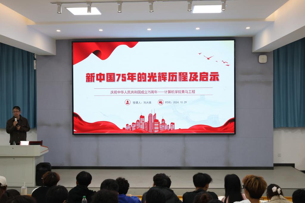 2024年10月29日晚,計算機(jī)學(xué)院青馬工程在玉衡南101教室正式開班,全體學(xué)生干部及2024級全體團(tuán)學(xué)會實習(xí)干事齊聚一堂,迎來了青馬工程開班第一課。本次課程由院黨委副書記劉大維主講,主題為“新中國75年的光輝歷程及啟示”。