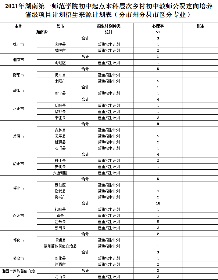 附件3 2021湖南第一師范學院初中起點本科層次鄉(xiāng)村小學男教師公費定向培養(yǎng)省級項目計劃招生來源計劃表(分市州分縣市區(qū)).png