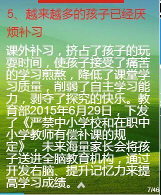 少年強(qiáng)則國(guó)強(qiáng)!好記性運(yùn)用腦屏成像訓(xùn)練原理,開發(fā)7-15周歲孩子右腦,通過學(xué)習(xí)和運(yùn)用密碼、圖像、聯(lián)想等方法,啟發(fā)孩子右腦深層記憶,讓所學(xué)知識(shí)永遠(yuǎn)記憶。好記性遵循“好玩有趣、快速記憶”的研發(fā)方針,自主研發(fā)中小學(xué)生全腦應(yīng)用訓(xùn)練課程,將所學(xué)知識(shí)記得快、記得準(zhǔn)、記得牢,達(dá)到過目不忘、倒背如流的效果,讓孩子從繁重的學(xué)習(xí)壓力中徹底解放出來。好記性堅(jiān)持“科學(xué)啟迪,快樂學(xué)習(xí)”的教學(xué)方針,激發(fā)學(xué)習(xí)興趣、增強(qiáng)自信心、提高創(chuàng)造力,提高學(xué)習(xí)效率、提高自主學(xué)習(xí)能力、提高學(xué)習(xí)成績(jī),造就人類各個(gè)領(lǐng)域的未來領(lǐng)袖。