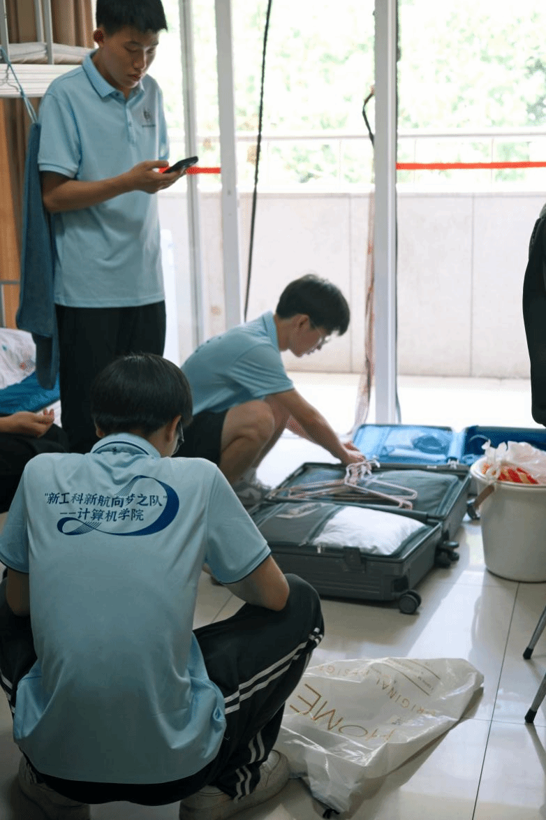 抵達(dá)湖南三一工業(yè)職業(yè)技術(shù)學(xué)院后,團(tuán)隊(duì)成員有序攜帶材料前往宿舍樓,按預(yù)分配的宿舍號(hào)完成登記,并投入宿舍整理。