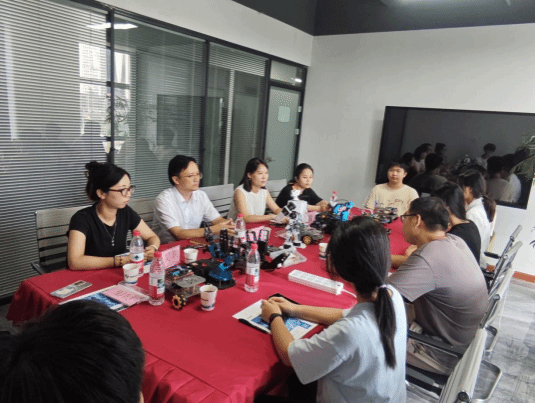 隨后,周陽陪同參觀了粵嵌基地展示大廳,并詳細(xì)介紹了基地的發(fā)展歷程、核心技術(shù)與產(chǎn)業(yè)成果。座談會上,周陽介紹了基地的實(shí)踐規(guī)劃與安排,表達(dá)了在人才培養(yǎng)、課程共建、實(shí)習(xí)實(shí)訓(xùn)等方面加強(qiáng)協(xié)同合作的意愿。楊夢云關(guān)切地詢問了同學(xué)們的生活近況與學(xué)業(yè)進(jìn)展。以張佳寧同學(xué)為代表的學(xué)生反饋了實(shí)踐中專業(yè)知識應(yīng)用的難點(diǎn)、企業(yè)導(dǎo)師指導(dǎo)的適配性以及實(shí)踐與課程銜接的感受。校企雙方圍繞實(shí)踐教學(xué)優(yōu)化、師資隊(duì)伍建設(shè)和學(xué)生就業(yè)指導(dǎo)等議題進(jìn)行了務(wù)實(shí)交流,達(dá)成共識,未來將在人才培養(yǎng)、科研項(xiàng)目協(xié)作等領(lǐng)域開展更具實(shí)質(zhì)性的合作。
