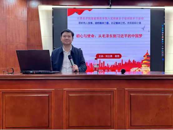 (通訊員:杜康寧 熊粵晨)10月31日,文學(xué)與新聞傳播學(xué)院黨委書記劉立勇為計(jì)算機(jī)學(xué)院、智能制造學(xué)院2024年秋季學(xué)期入黨積極分子講授黨課。