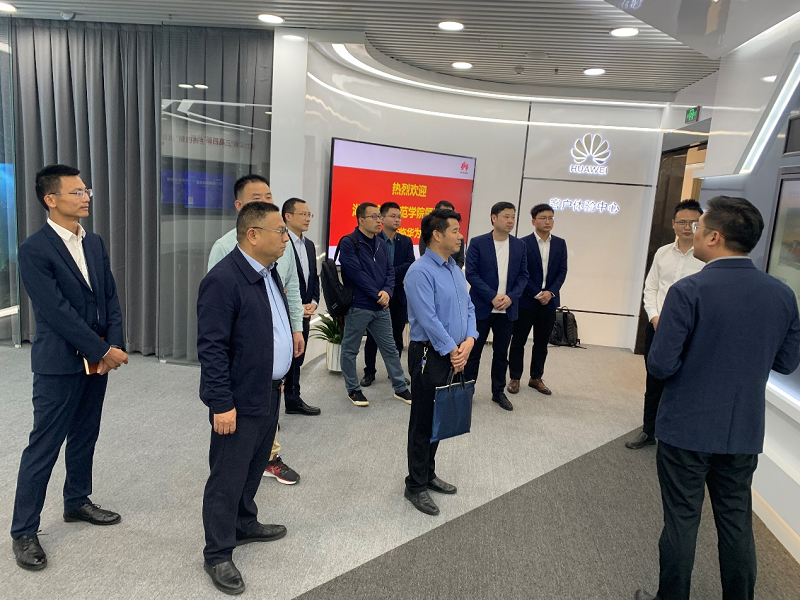 在吳振華的陪同下,周發(fā)明一行參觀了華為數(shù)字化創(chuàng)新體驗中心展廳,了解華為公司發(fā)展現(xiàn)狀以及相關(guān)產(chǎn)品。