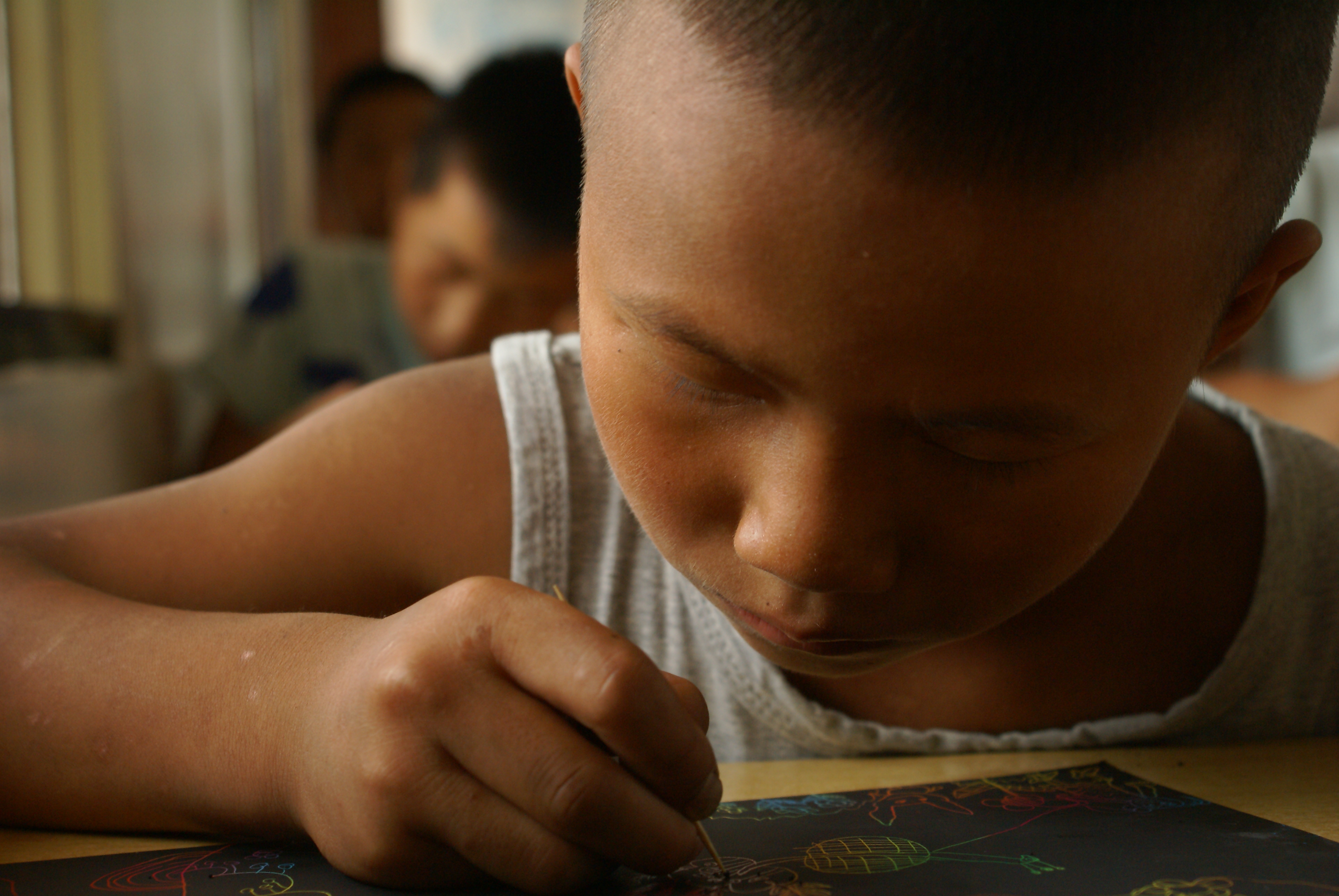 中午12點陸陸續(xù)續(xù)有來自較近的金落河村的學(xué)生在學(xué)校玩耍,下午兩點兩個班的班主任召開開學(xué)第一課,隨后就開始了教學(xué)工作了。大班迎來了獨具特色的美術(shù)課堂,在唐蓉琪老師的帶領(lǐng)下學(xué)生開始使用牙簽在特殊的黑紙上進(jìn)行刮畫創(chuàng)作,學(xué)生們都是第一次接觸這樣的美術(shù)創(chuàng)作形式都紛紛表示十分喜歡這樣的課堂。小班迎來了王鑠老師的兒童舞蹈課在教師的帶領(lǐng)下學(xué)生在音樂中翩翩起舞場面歡樂不已。