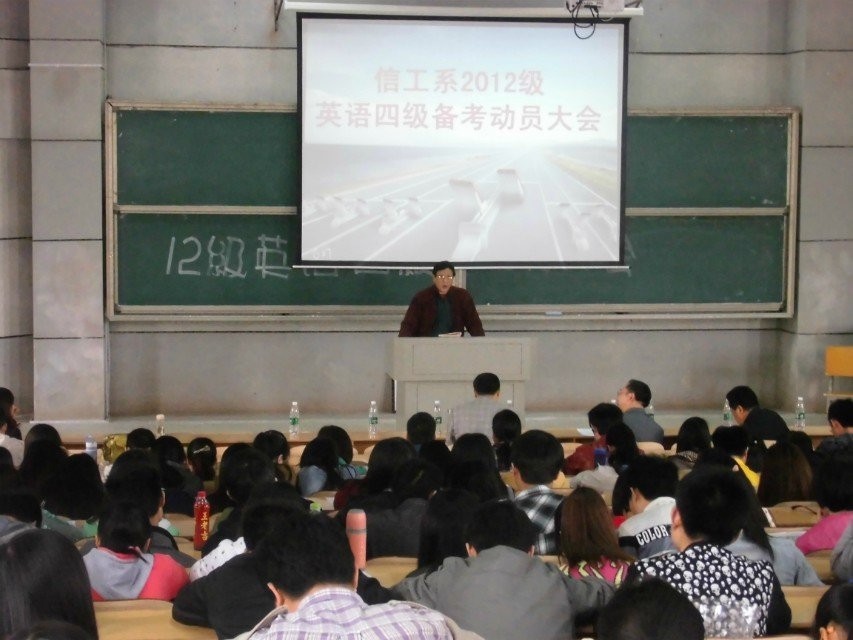 緊接著優(yōu)秀學(xué)生代表11電子科學(xué)與技術(shù)1班王婷向大家展示了10級(jí)、11級(jí)較高的四級(jí)通過(guò)率,并分享了四級(jí)考試的寶貴經(jīng)驗(yàn)。12教育技術(shù)學(xué)1班宋麗代表全體2012級(jí)學(xué)生表達(dá)了努力備考四級(jí)考試的決心。