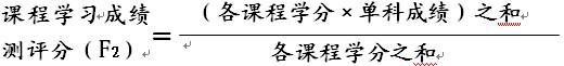 第十四條 學業(yè)成績用F2表示,為納入測評的各門必修課、限選課的學分與各科目單科成績的乘積之和,再除以各課程學分之和,其計算公式為: