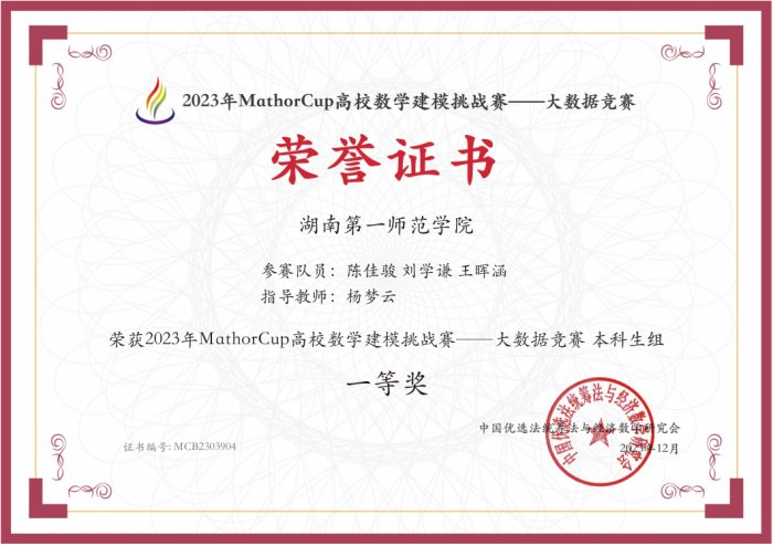 2023年第四屆MathorCup高校數(shù)學建模挑戰(zhàn)賽——大數(shù)據(jù)競賽圓滿落下帷幕,我院四支參賽隊伍在激烈的競爭中脫穎而出,斬獲了全國研究生組二等獎1項,本科生組一等獎3項。這一驕人成績的取得,正是參賽隊員們的辛勤付出和指導教師的悉心指導的結(jié)果。