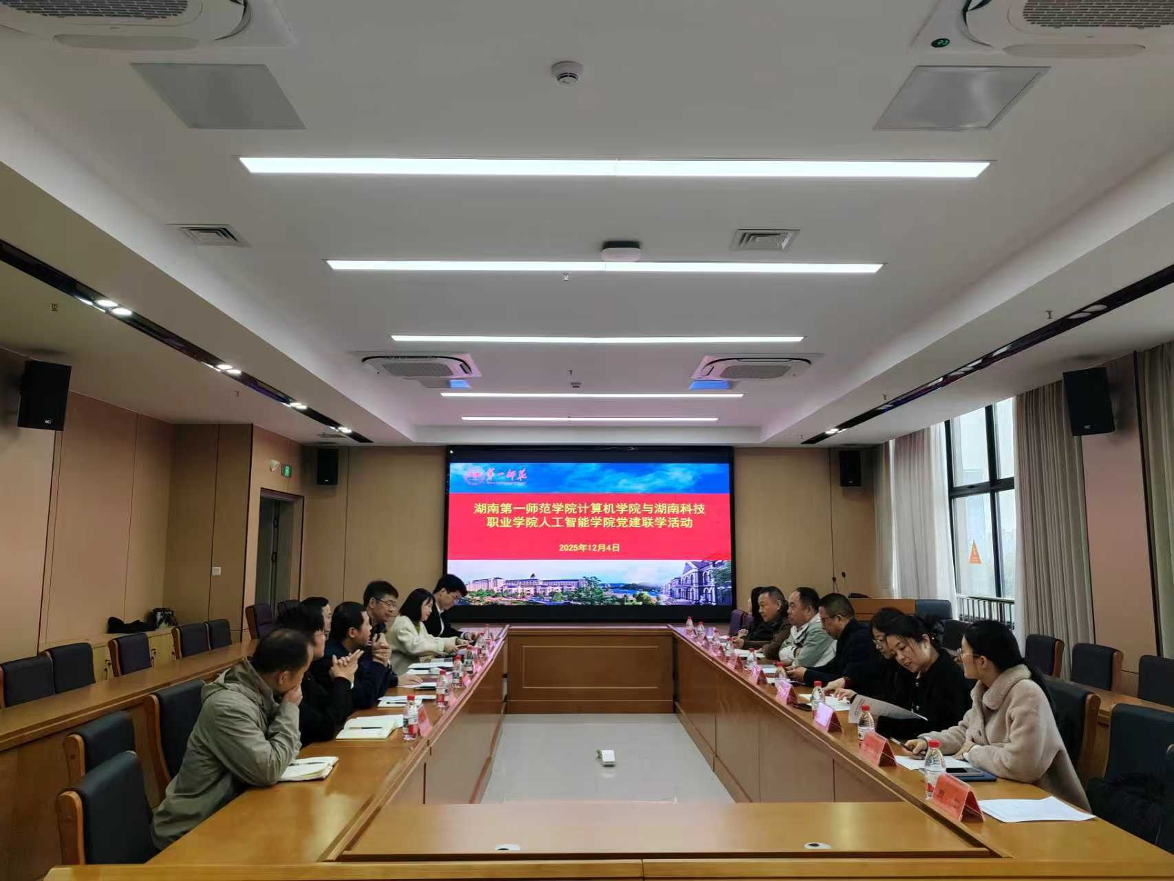 12月4日上午,我院與湖南科技職業(yè)學(xué)院人工智能學(xué)院在立園樓712會議室開展黨建聯(lián)學(xué)活動,深入學(xué)習(xí)貫徹黨的二十屆四中全會精神,深化校際合作。院黨政班子全體成員、現(xiàn)代教育中心副主任周賢、系主任代表,湖南科技職業(yè)學(xué)院人工智能學(xué)院黨總支書記劉志勇、網(wǎng)絡(luò)安全與信息技術(shù)中心主任易東初等參加了活動,活動由我院黨委副書記陳奕主持。