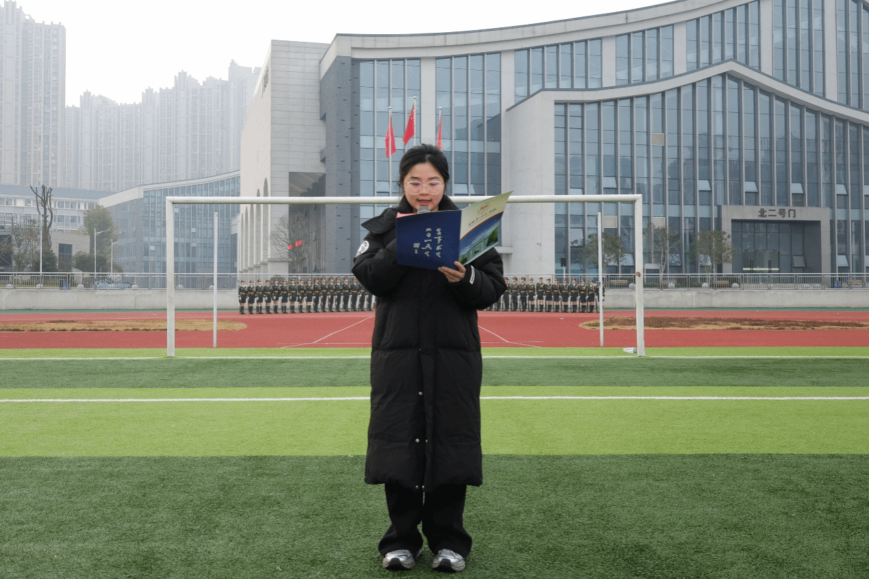晨光初現(xiàn),田徑場上一片肅穆。國旗護衛(wèi)隊身著統(tǒng)一制服,邁著鏗鏘有力的步伐,昂首挺胸護衛(wèi)國旗入場。伴隨著雄壯的《義勇軍進行曲》,鮮艷的五星紅旗冉冉升起,全體師生肅立注目,齊聲高唱國歌,表達對祖國的無限熱愛與崇高敬意,現(xiàn)場氣氛莊重而熱烈。