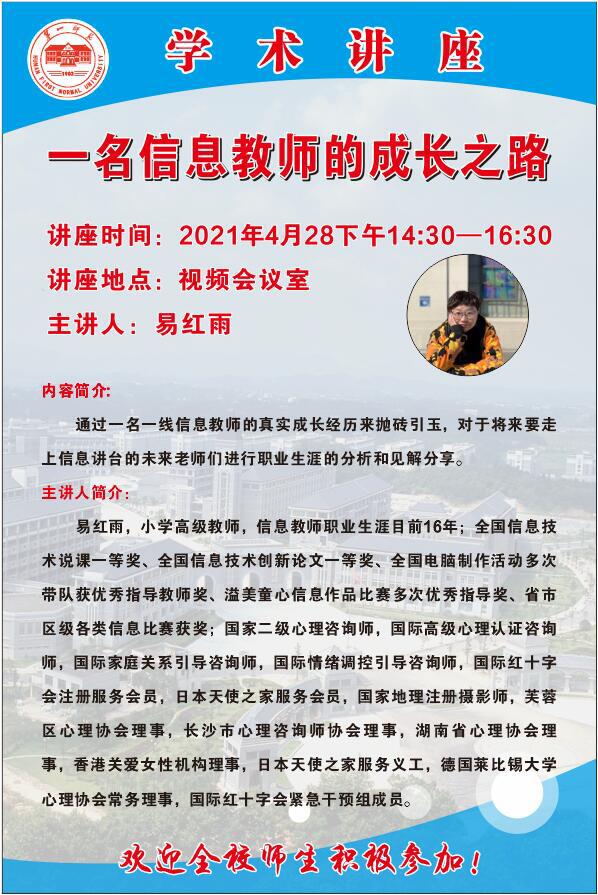 上一條:【學(xué)術(shù)講座】 岳麓區(qū)信息技術(shù)學(xué)科教學(xué)組織與教學(xué)思考