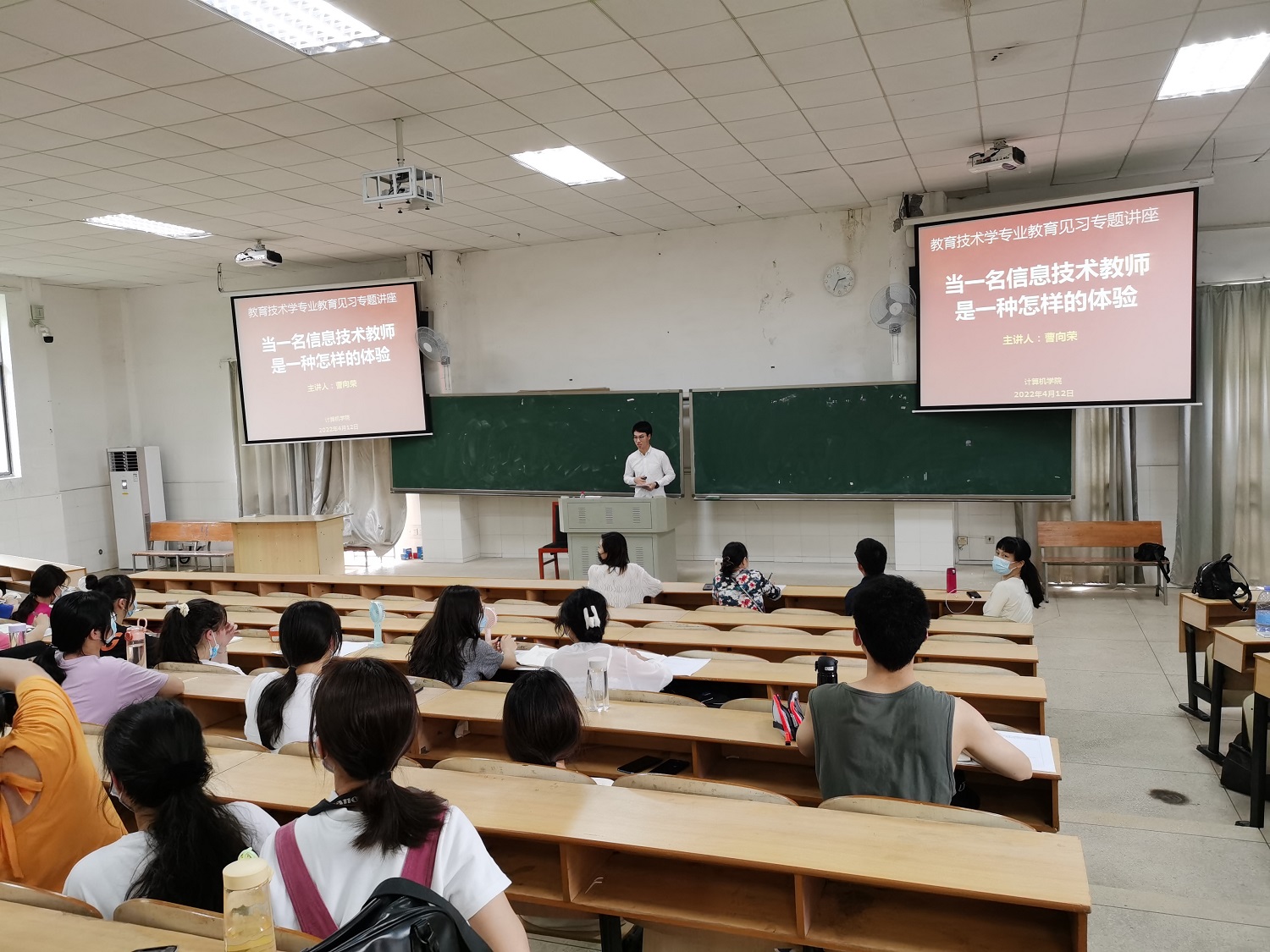 2022年4月12日,2016屆優(yōu)秀畢業(yè)生曹向榮受邀在玉衡南201為我院教育技術(shù)學(xué)專業(yè)學(xué)生開展《當(dāng)信息技術(shù)教師是一種怎樣的體驗》教育見習(xí)專題講座。副院長何向陽、教育見習(xí)指導(dǎo)老師、教育技術(shù)系部分老師、20教技1班、21級教技881及882班全體同學(xué)參加了講座。講座由教育技術(shù)系副主任劉琳主持,
