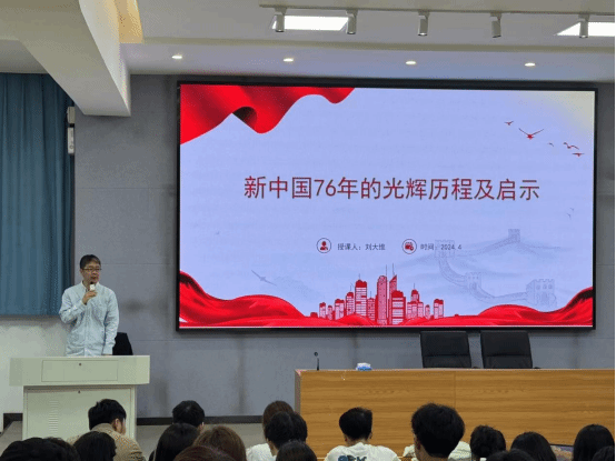 劉大維以“新中國七十六年的光輝歷程及啟示”為主題,通過詳實(shí)的數(shù)據(jù)和生動(dòng)的案例,生動(dòng)展現(xiàn)了新中國76年來所創(chuàng)造的偉大奇跡。在回顧歷史進(jìn)程時(shí),劉大維將76年細(xì)分為多個(gè)關(guān)鍵階段:從新民主主義革命勝利后的百廢待興,到社會(huì)主義建設(shè)時(shí)期的艱辛探索;從改革開放春風(fēng)吹遍神州大地,到新時(shí)代中國特色社會(huì)主義事業(yè)的蓬勃發(fā)展,每一個(gè)階段都凝聚著無數(shù)中華兒女的拼搏與奉獻(xiàn)。最后,劉大維總結(jié)強(qiáng)調(diào),“歷史是最好的教科書”,正是堅(jiān)持中國共產(chǎn)黨的領(lǐng)導(dǎo),中國才能走過光輝歷程,創(chuàng)造偉大奇跡。這啟示我們,唯有不忘初心、砥礪前行,方能戰(zhàn)勝一切艱難險(xiǎn)阻。