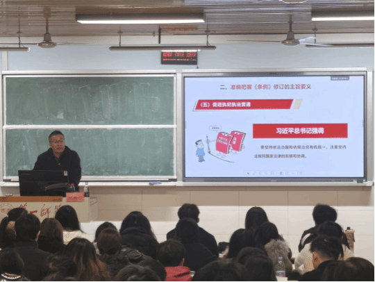 田祖?zhèn)ナ紫葟娬{(diào)了紀律嚴明是黨的光榮傳統(tǒng)和獨特優(yōu)勢。他指出新修訂的黨內(nèi)法規(guī),是促進全黨深刻領(lǐng)悟“兩個確立”的決定性意義、堅決做到“兩個維護”的必然要求。隨后,他引導學員們要準確把握新時代黨的建設(shè)總要求和全面從嚴治黨戰(zhàn)略方針,明確日常言行的衡量標尺,自覺用黨規(guī)黨紀校正思想和行動。最后,他就如何抓好黨內(nèi)法規(guī)的貫徹執(zhí)行,以嚴明紀律推進黨的自我革命提出了明確要求。