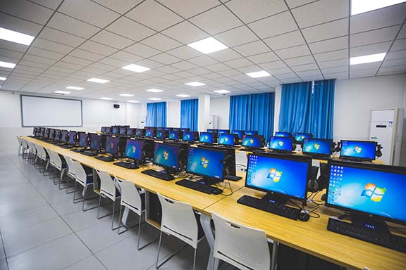 計(jì)算機(jī)基礎(chǔ)實(shí)驗(yàn)教學(xué)中心屬于省級(jí)實(shí)驗(yàn)教學(xué)示范中心,建于2006年3月,共有9間實(shí)驗(yàn)室,位于特立樓2-3樓,總面積1178.8平方米,資產(chǎn)總值達(dá)336.7萬(wàn)元,擁有設(shè)備總臺(tái)件數(shù)758臺(tái),其中計(jì)算機(jī)643臺(tái)。本中心是全校信息技術(shù)訓(xùn)練平臺(tái),主要承擔(dān)全校所有專業(yè)的大學(xué)計(jì)算機(jī)基礎(chǔ)、現(xiàn)代教育技術(shù),教師信息技術(shù)應(yīng)用、信息技術(shù)基礎(chǔ)、英語(yǔ)視聽(tīng)說(shuō)、口語(yǔ)、普通話訓(xùn)練等56門課程的實(shí)驗(yàn)教學(xué)任務(wù);是師范生信息化教學(xué)技能的重要實(shí)訓(xùn)場(chǎng)所。同時(shí)承擔(dān)了全國(guó)計(jì)算機(jī)等級(jí)考試,湖南省普通話測(cè)試,湖南省成人高考學(xué)位英語(yǔ)考試,“外研社·國(guó)才杯”全國(guó)英語(yǔ)閱讀寫(xiě)作大賽,全國(guó)藍(lán)橋杯程序設(shè)計(jì)比賽,湖南第一師范學(xué)院微型課設(shè)計(jì)大賽等各種重要賽事;具有“大學(xué)生英語(yǔ)自主學(xué)習(xí)平臺(tái)”、“教師技能培訓(xùn)平臺(tái)”“漢語(yǔ)能力評(píng)價(jià)與訓(xùn)練教育軟件”等教學(xué)資源,面向全校開(kāi)放。