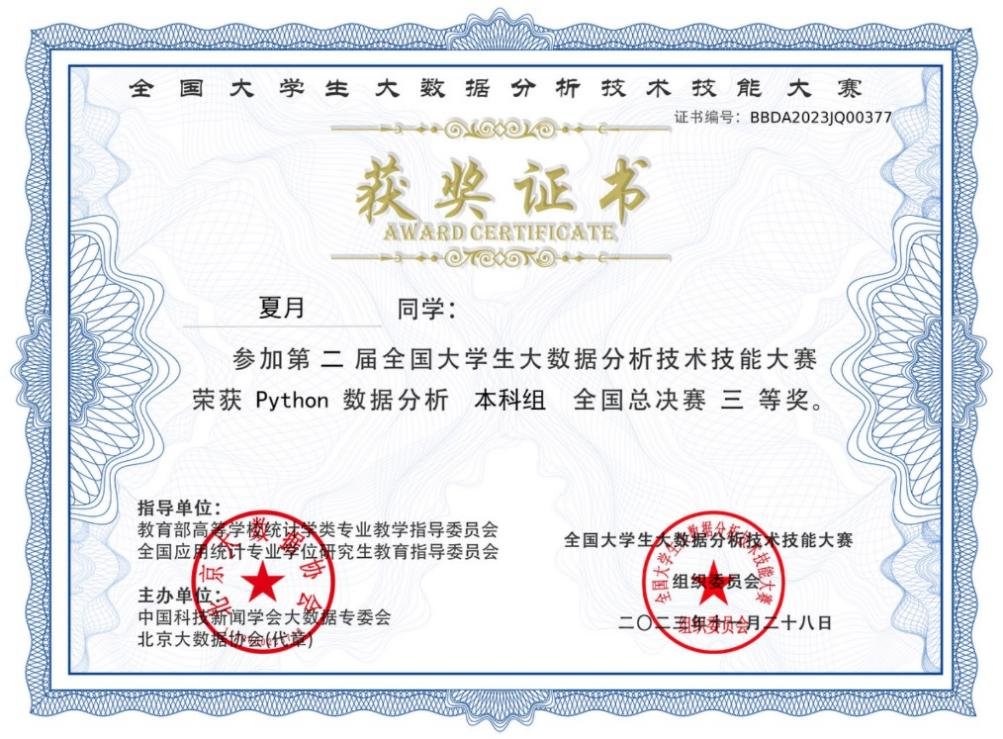 近日,第二屆全國(guó)大學(xué)生大數(shù)據(jù)分析技術(shù)技能大賽全國(guó)總決賽圓滿(mǎn)落幕,我校計(jì)算機(jī)學(xué)院學(xué)子在全國(guó)總決賽中喜獲一、二、三等獎(jiǎng)共七項(xiàng)獎(jiǎng)項(xiàng)。