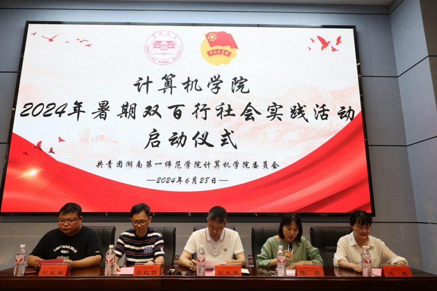 在全場熱烈的掌聲中,陳奕宣布湖南第?師范學(xué)院計算機(jī)學(xué)院2024年暑期“雙百行”社會實踐活動正式啟動。本次計算機(jī)學(xué)院暑期“雙百行”活動涉及面廣,規(guī)模較大,將組建數(shù)支隊伍奔赴三一重工股份有限公司、科大訊飛中南總部、湖南航天信息科技有限公司等企業(yè),開展職業(yè)體驗、專項調(diào)研等社會實踐活動,他們將攜手同行,用自己的智慧和才華共同繪就屬于工科學(xué)子的青春華章。