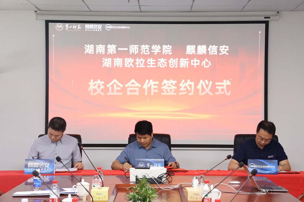 7月5日,湖南第一師范學(xué)院與麒麟信安、湖南歐拉生態(tài)創(chuàng)新中心校企合作協(xié)議簽約儀式在長(zhǎng)沙麒麟科技園舉行。湖南第一師范學(xué)院校黨委委員、副校長(zhǎng)周發(fā)明,麒麟信安副總裁王攀,計(jì)算機(jī)學(xué)院黨委副書記劉大維(主持工作)、黨委副書記陳奕、副院長(zhǎng)李新宇,麒麟信安技術(shù)支持服務(wù)中心總經(jīng)理莫帆等出席了簽約儀式。