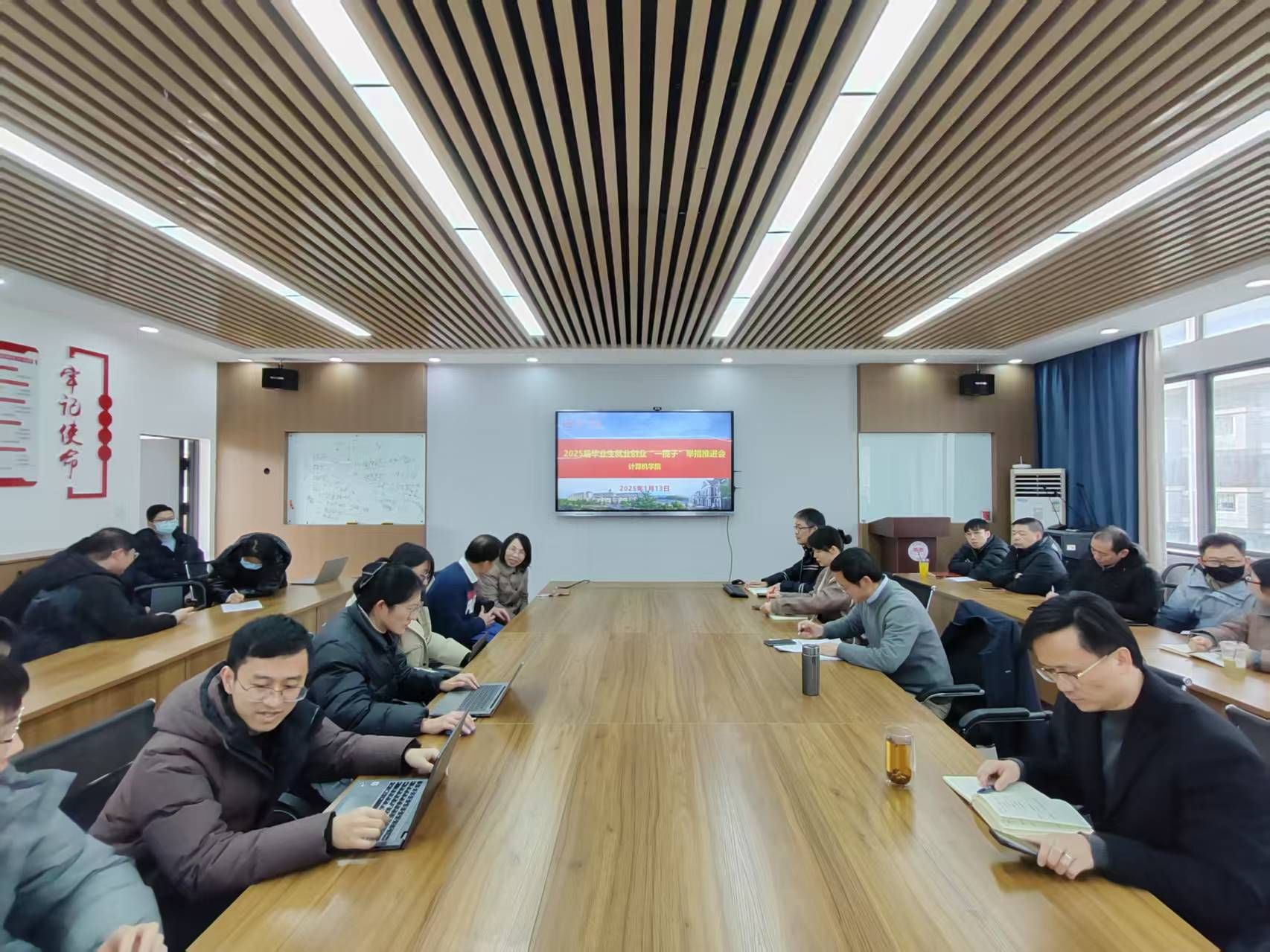 為進(jìn)一步推動(dòng)我院畢業(yè)生就業(yè)創(chuàng)業(yè)工作,1月13日下午,我院在玉衡樓406召開2025屆畢業(yè)生就業(yè)創(chuàng)業(yè)“一攬子”舉措推進(jìn)會(huì),院長(zhǎng)楊恒伏、院黨委副書記劉大維(主持工作)、院黨委副書記陳奕、副院長(zhǎng)楊夢(mèng)云以及全體教師參加會(huì)議,會(huì)議由劉大維主持。