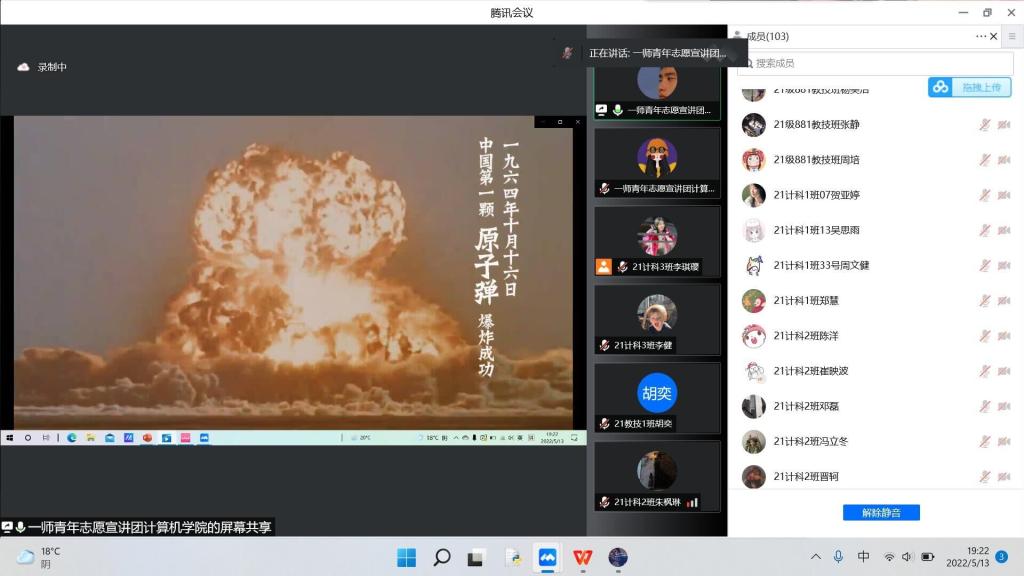 此次活動以線上形式進行,13日晚19點主持人一段昂揚的開場白過后,宣講活動拉開了帷幕。圍繞“黨旗高高揚,紅色核工業(yè)”的主題,豐富的紅色‘核’知識以多樣的形式呈現(xiàn)在同學們眼前。線上會議共享的,遠不止核工業(yè)知識,還有家國情懷以及要用心發(fā)現(xiàn)生活中美好事物的精神。